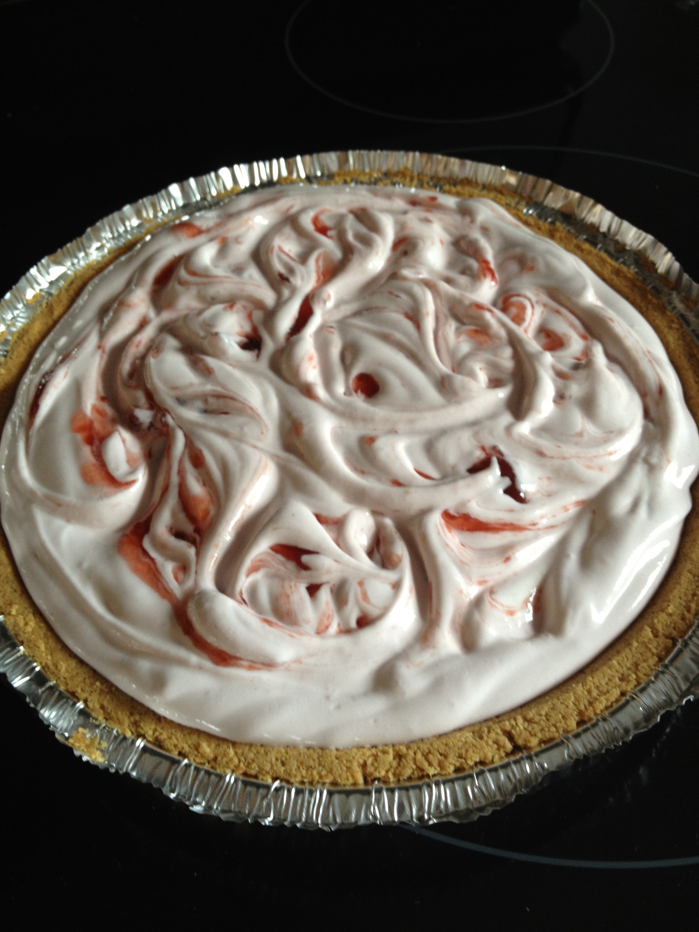 Heat preserves 30 seconds or until runny. Pour over top of pie and swirl slowly with a knife.