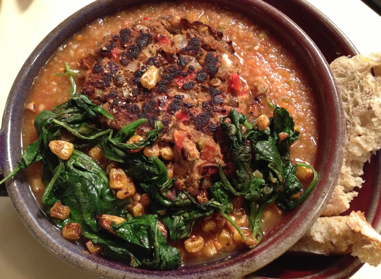 Combine all ingredients (except corn and spinach) in a medium bowl. Mash with hands. Form into balls 2-3″ in diameter and pack tightly with hands. Refrigerate for at least 30 minutes.
