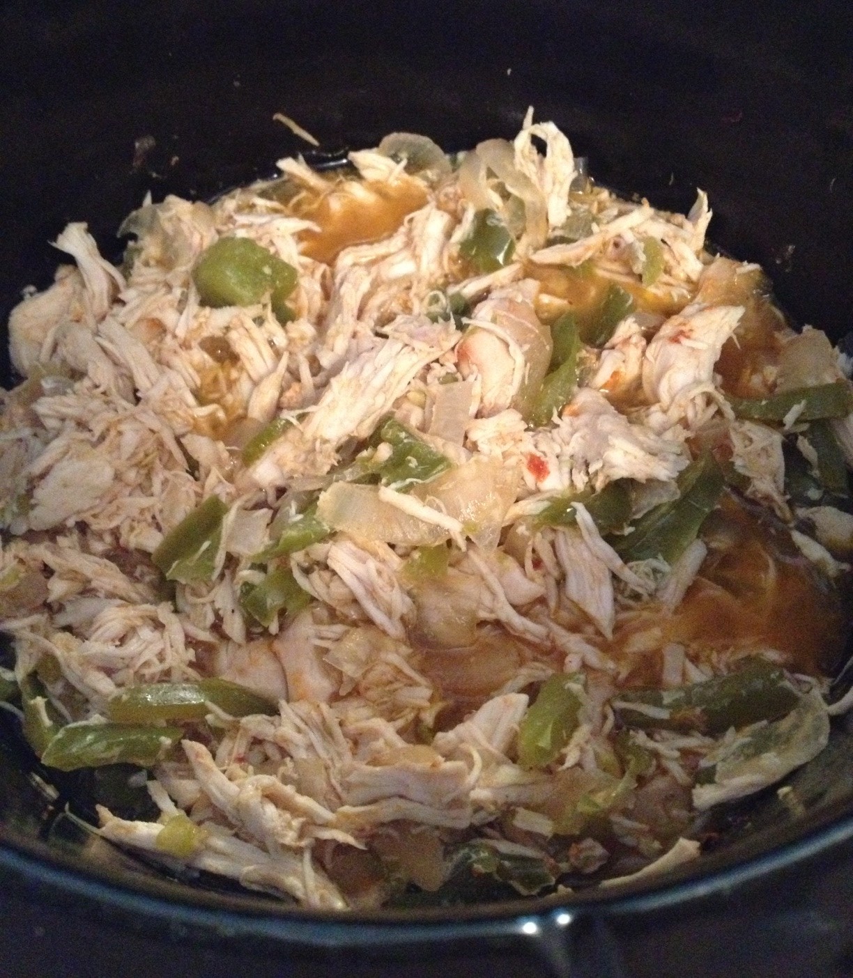- Shred chicken and mix into veggies. Turn crock pot to “warm” setting.