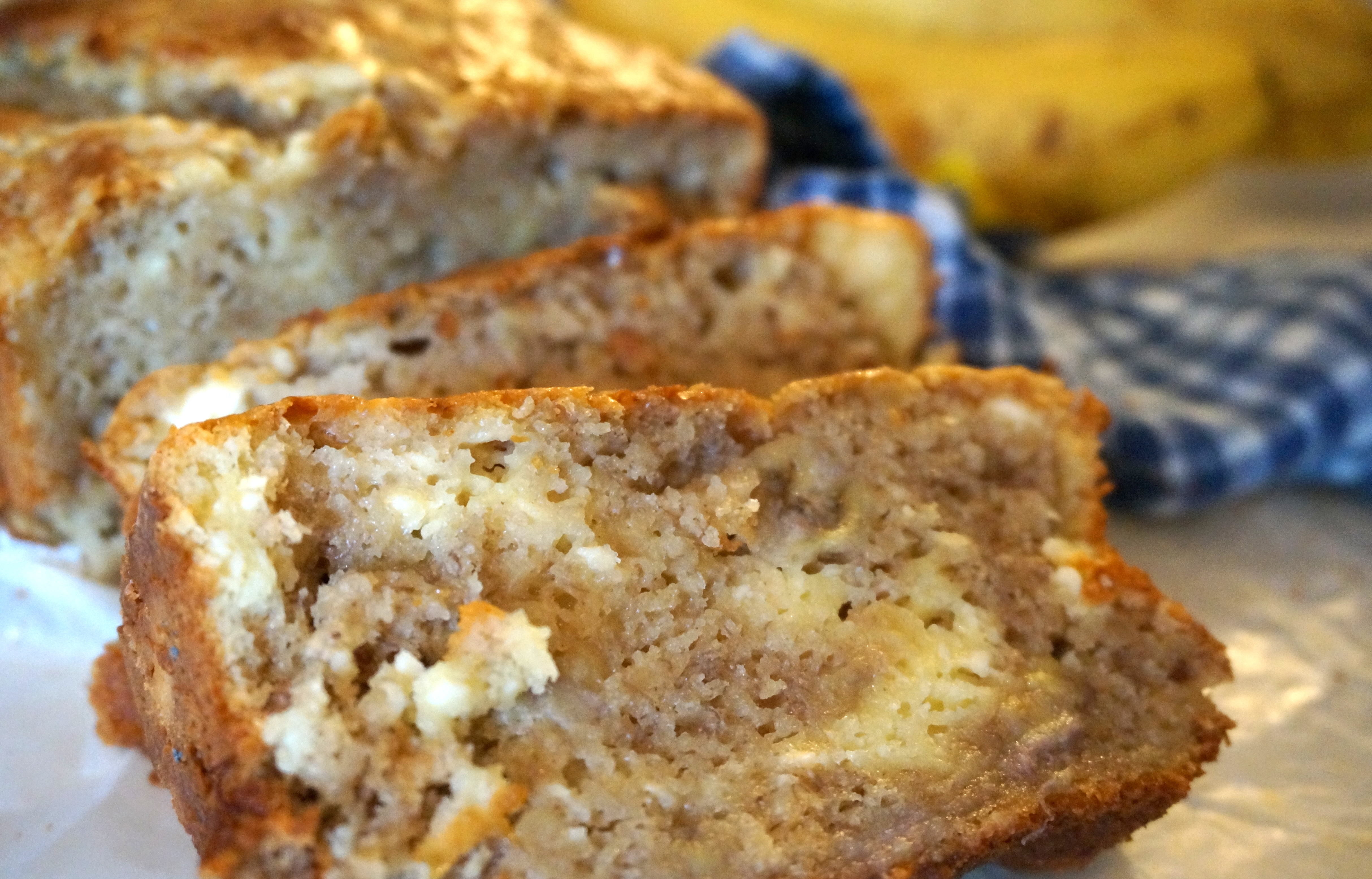 I’ve been wanting to try out this recipe for a long while now, because seriously- who can resist a melt-in-your-mouth banana bread with a layer of cream cheese swirl “surprise” nestled right in the middle? Best. Idea. Ever. I wish I could say I came up with it on my own, but I based this recipe off of one from Averie Cooks with only a few minor tweaks (more yogurt, an additional banana, and a pinch of cinnamon). I also decided to “swirl” the cream cheese layer, as the remaining batter on top didn’t quite cover it all and cream cheese started to seep out the top corners. Anyway, it did not disappoint. You NEED to try this out for yourself. Honestly, I don’t think I’ll ever make it another way!