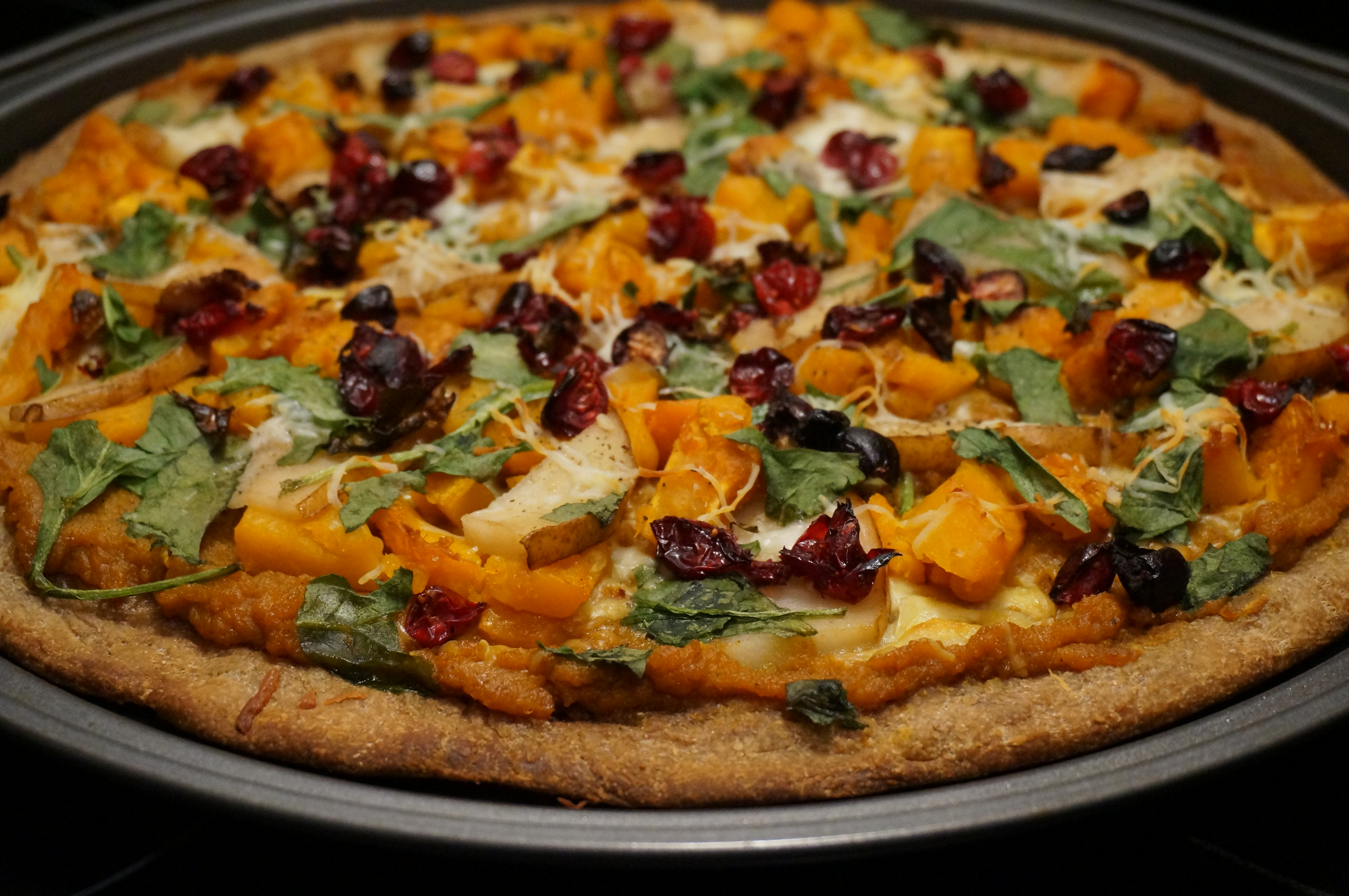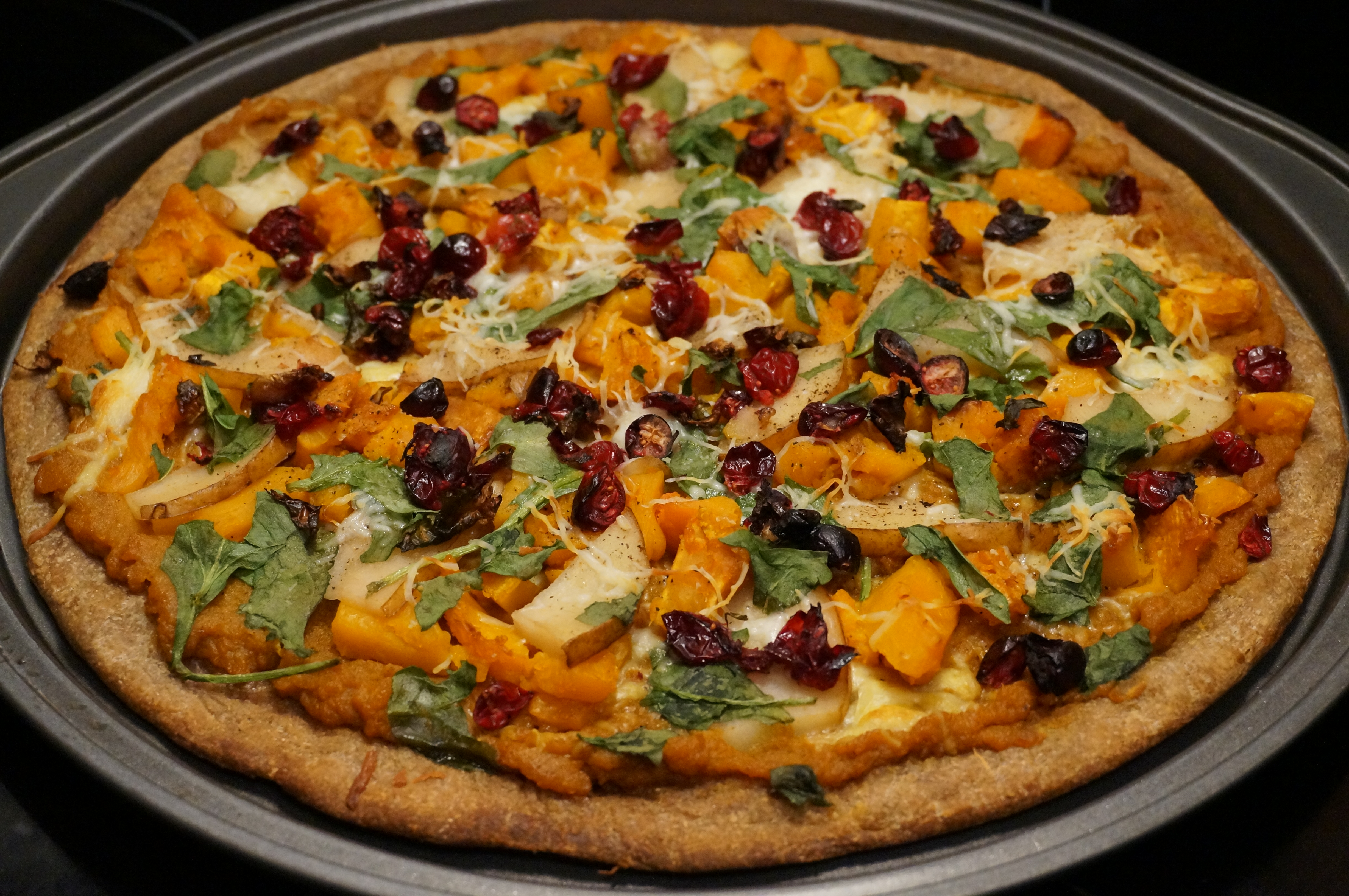 Roasted Butternut Squash, Pear, and Cranberry Pizza w/ Pumpkin Sauce & Fontina Cheese