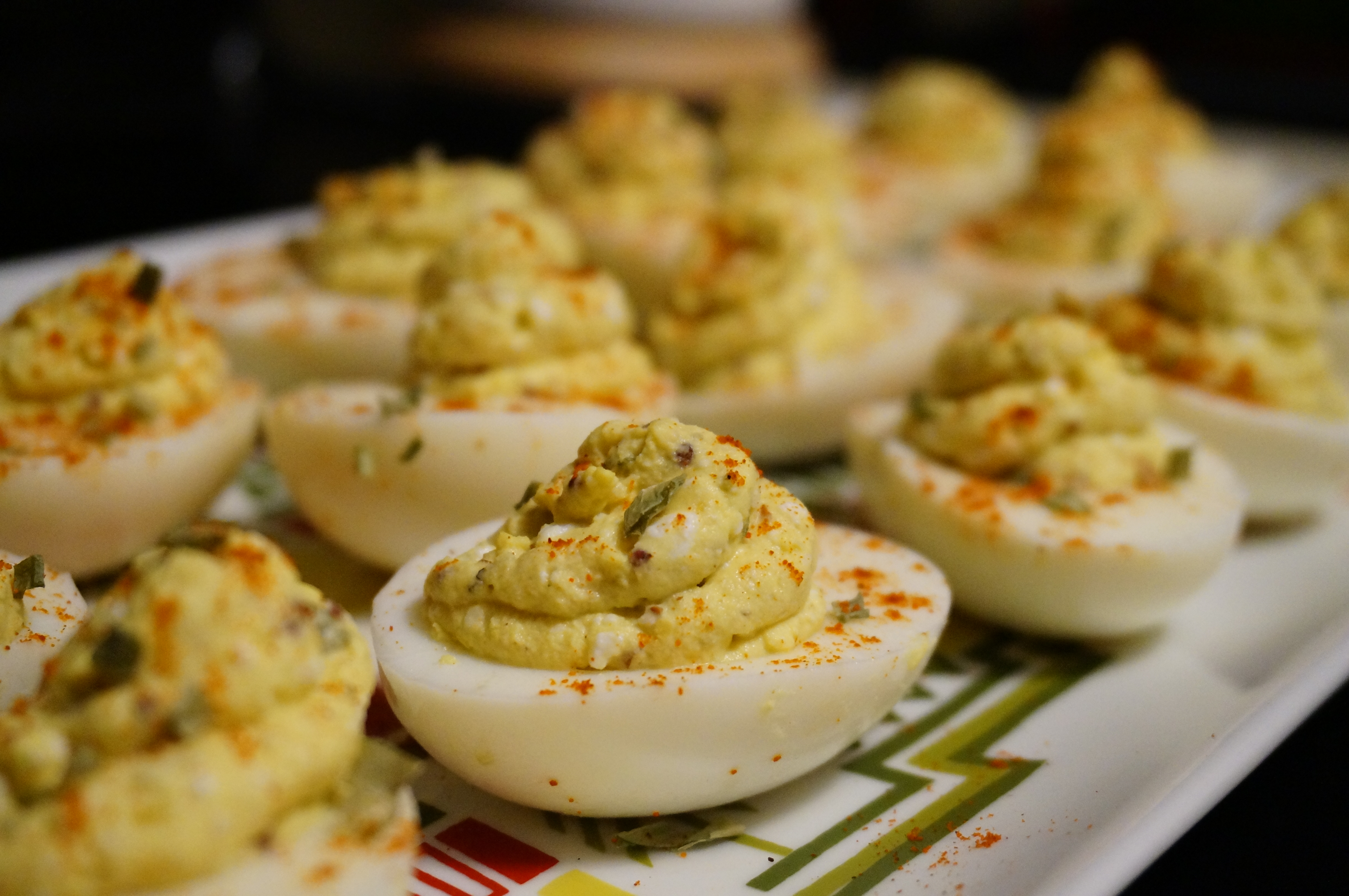 Who says deviled eggs can’t be angelic? This Christmas, try my Greek yogurt deviled eggs- Greek yogurt is such an easy substitute for mayonnaise and a good way to get in some extra protein to fill you up at that next holiday party! Add a touch of cottage cheese and parmesan to give these just the right amount of creaminess to balance out the tang of the yogurt. Feel free to experiment with your own mix-ins! I happened to have chives on hand, so I figured they’d look pretty on top (besides, with the chives and paprika, these become Christmas-themed!).