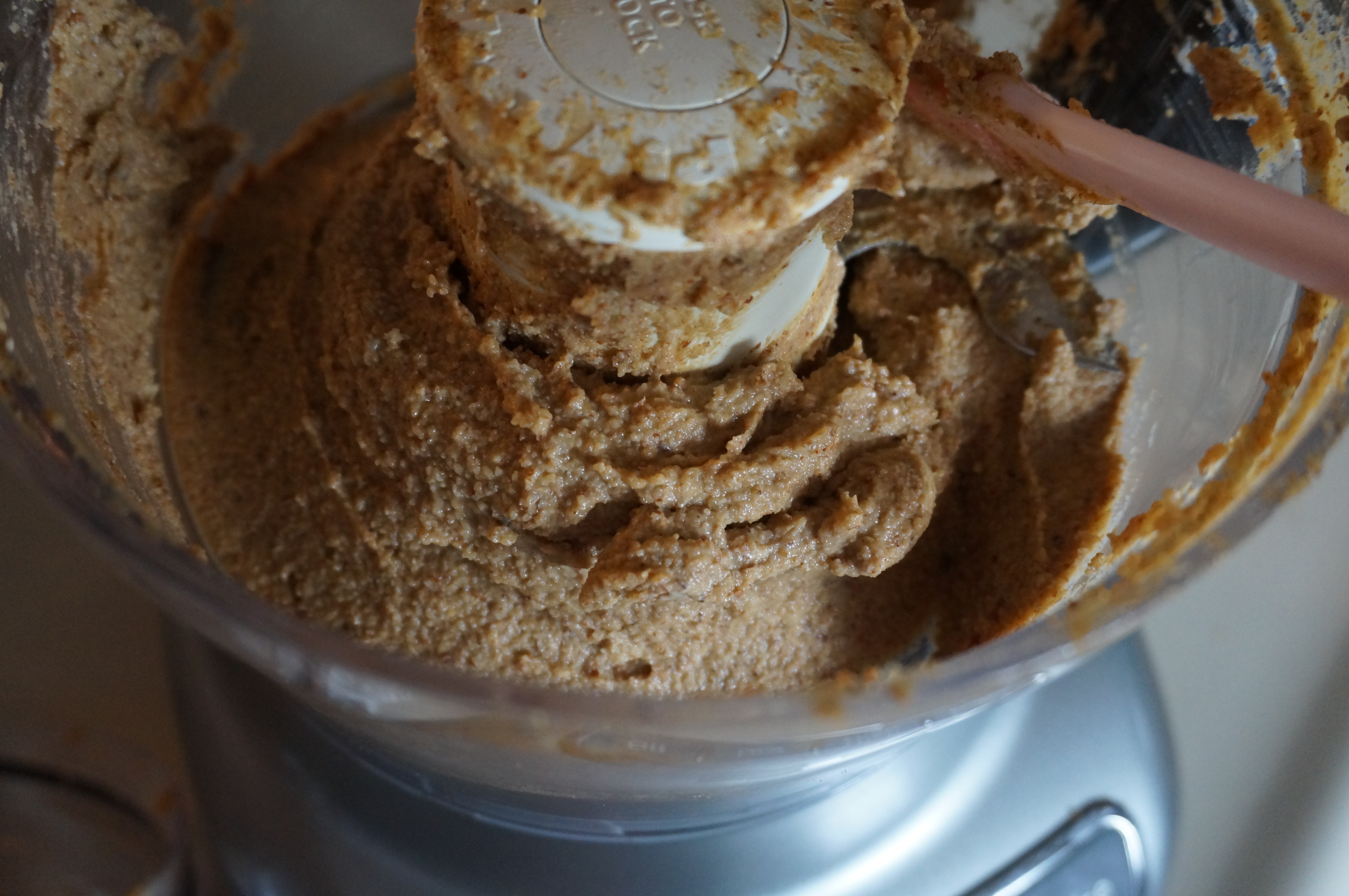 - Scrape down the sides with a spatula and continue processing 8 more minutes, scraping down the sides every 2 minutes.