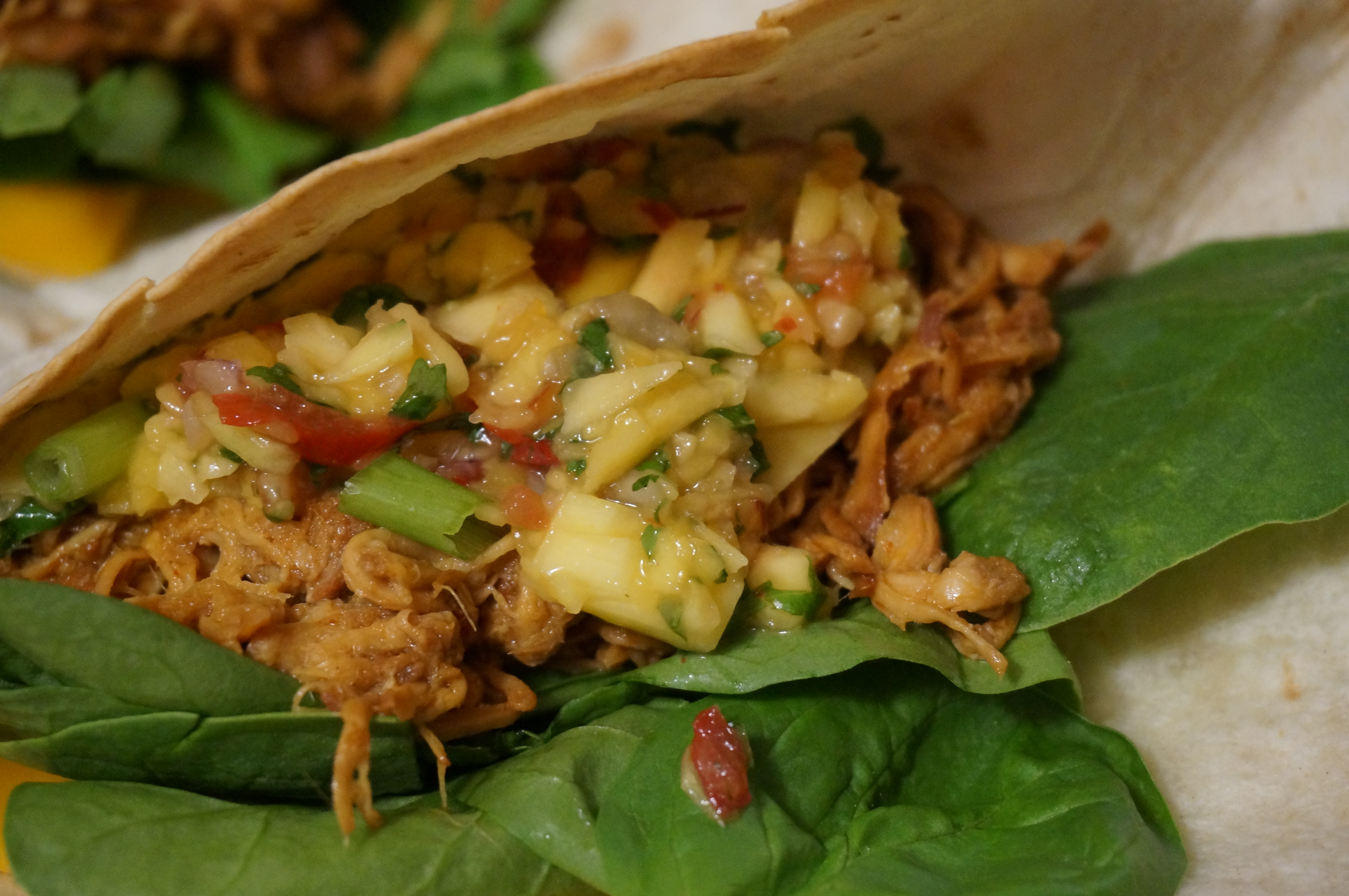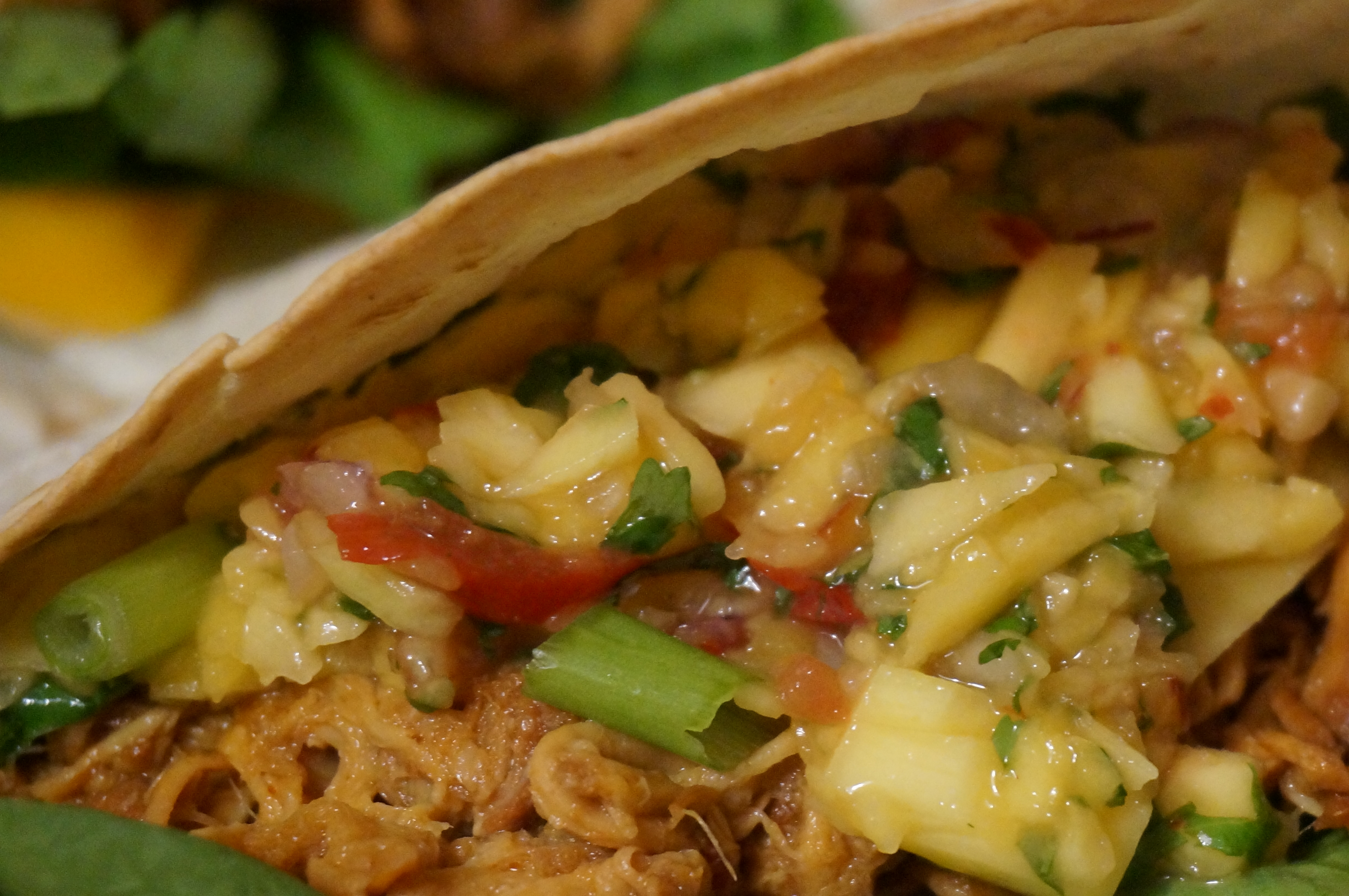 Here’s a healthy and summery recipe that comes together in just a few steps! Kitchen staples like a food processor and crock pot make these tacos a breeze to make! Serve with mango salsa to add some sweetness and tang!