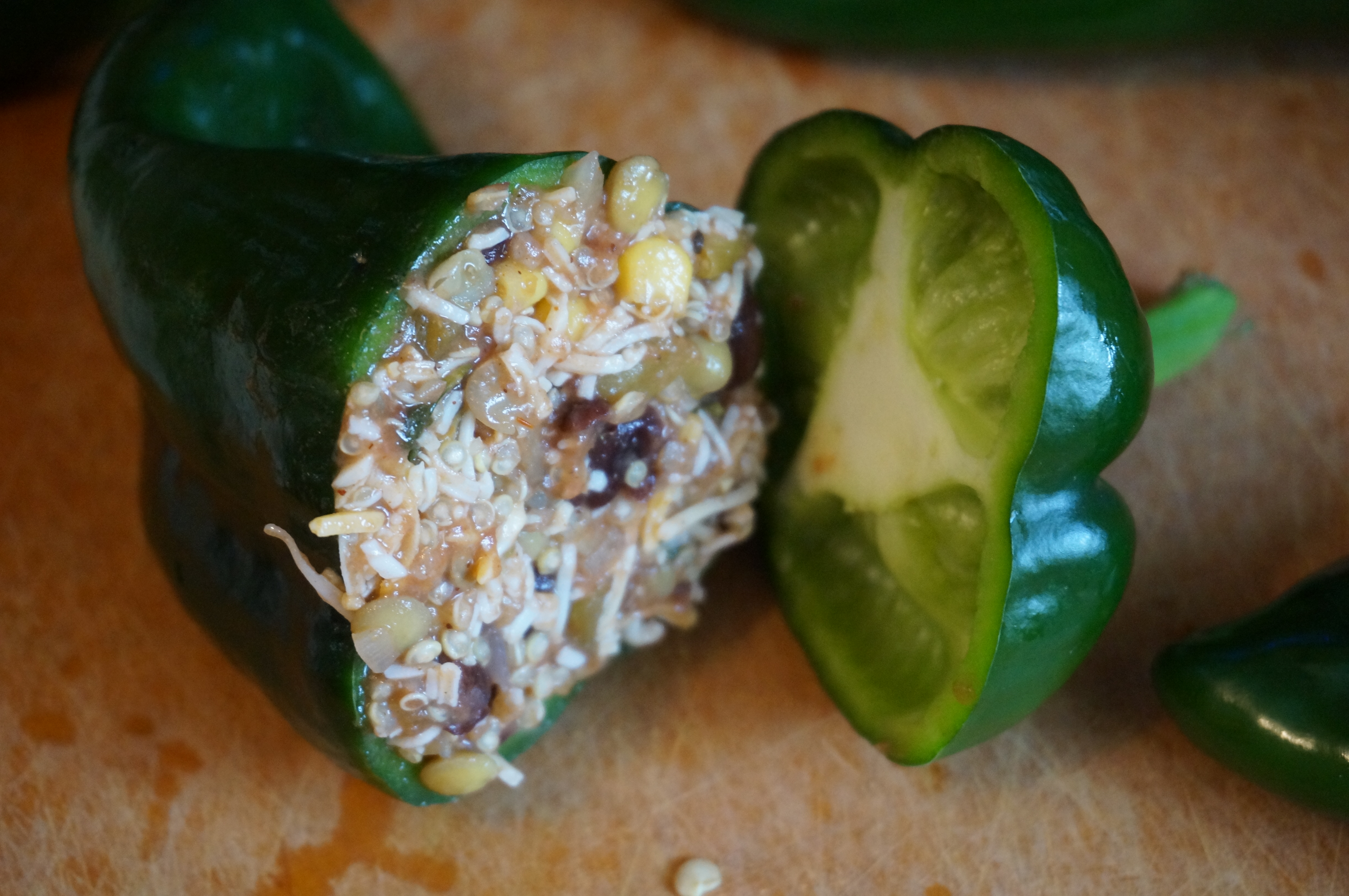 Ok. Down to business. Start by making your filling and chopping off the tops of the peppers, discarding the spicy seeds and cores.