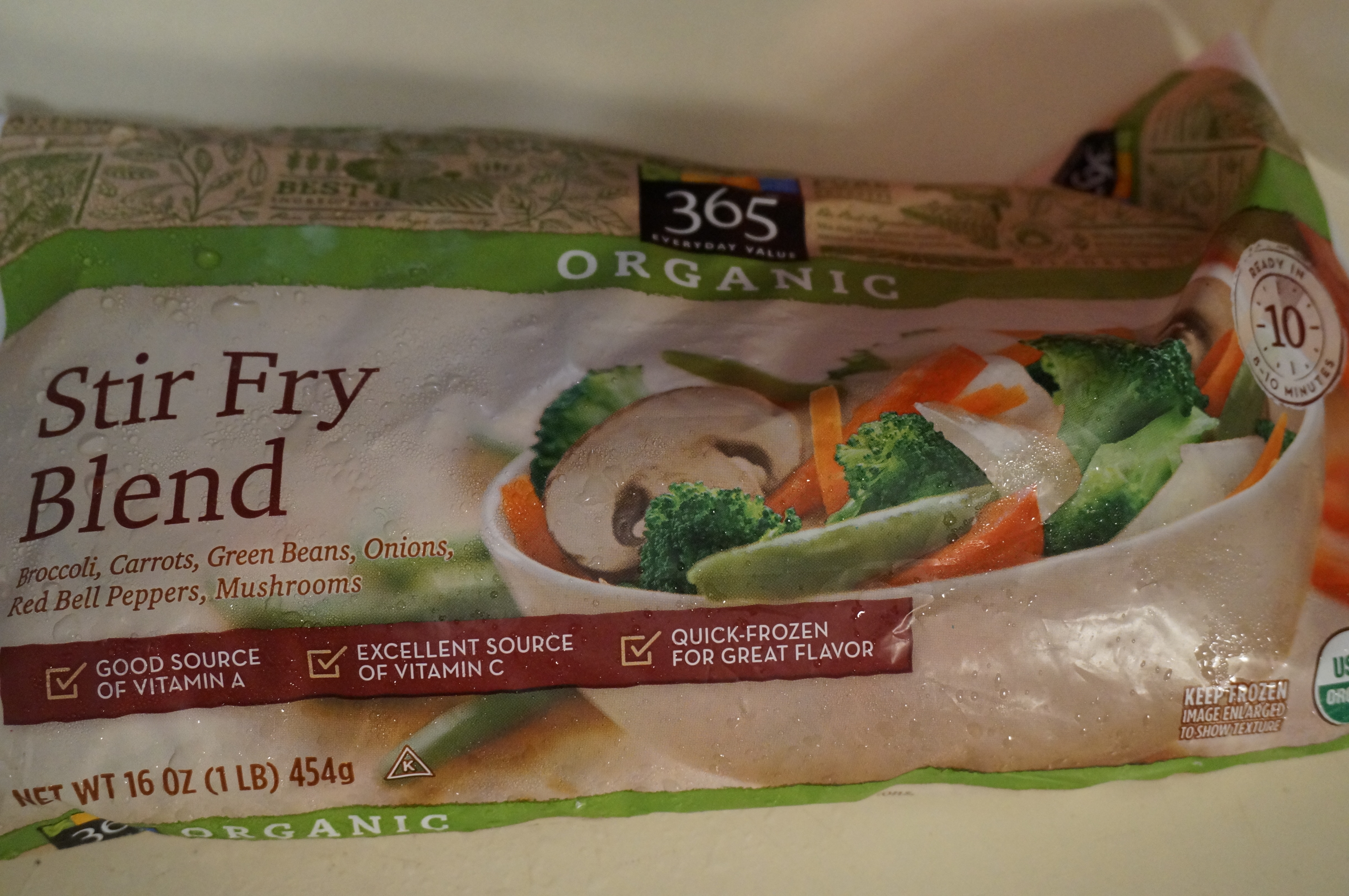 - frozen broccoli or stir fry mixture (I used a whole foods 365 blend that had frozen broccoli, peppers, onions, mushrooms, and green beans)