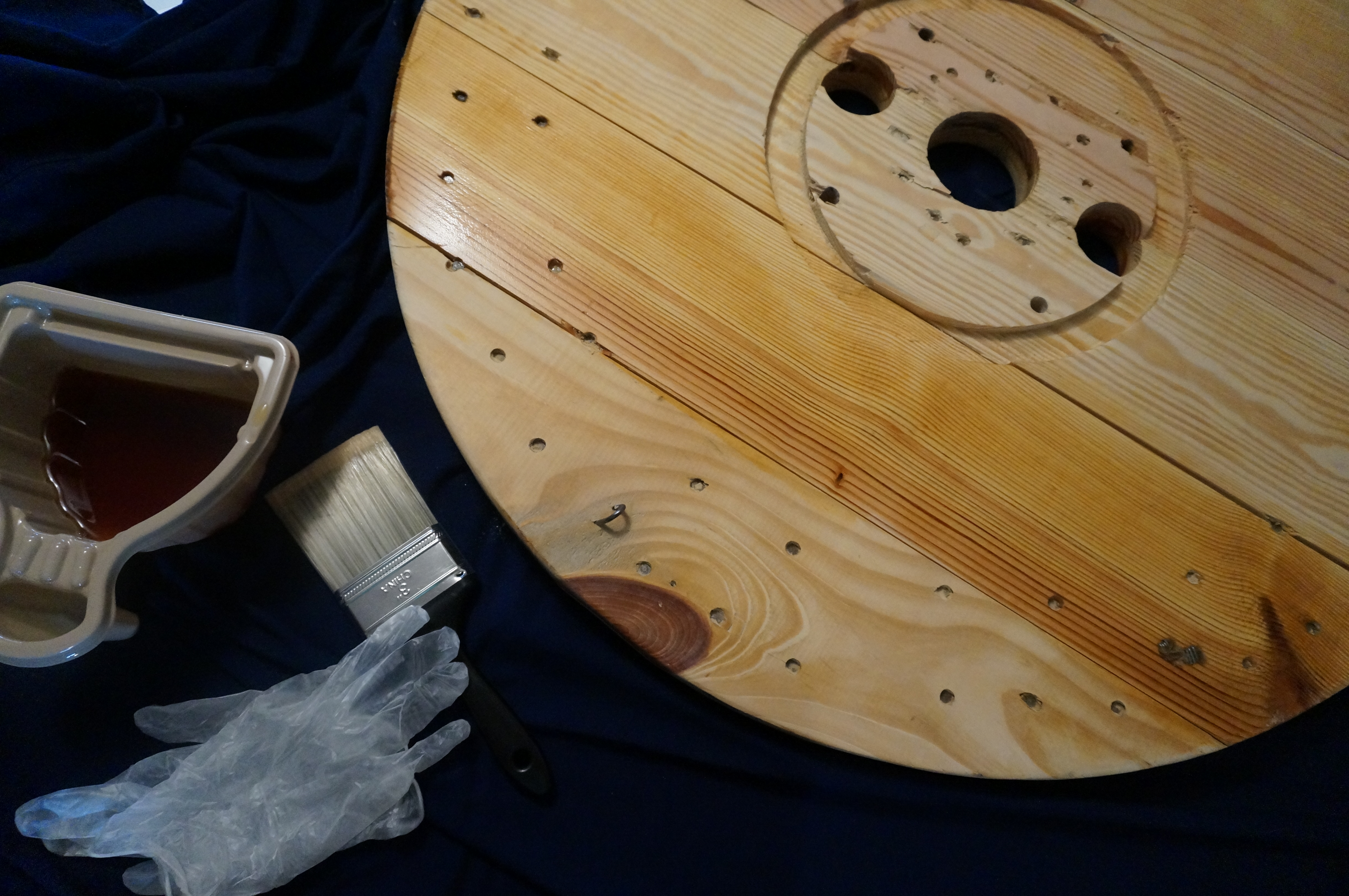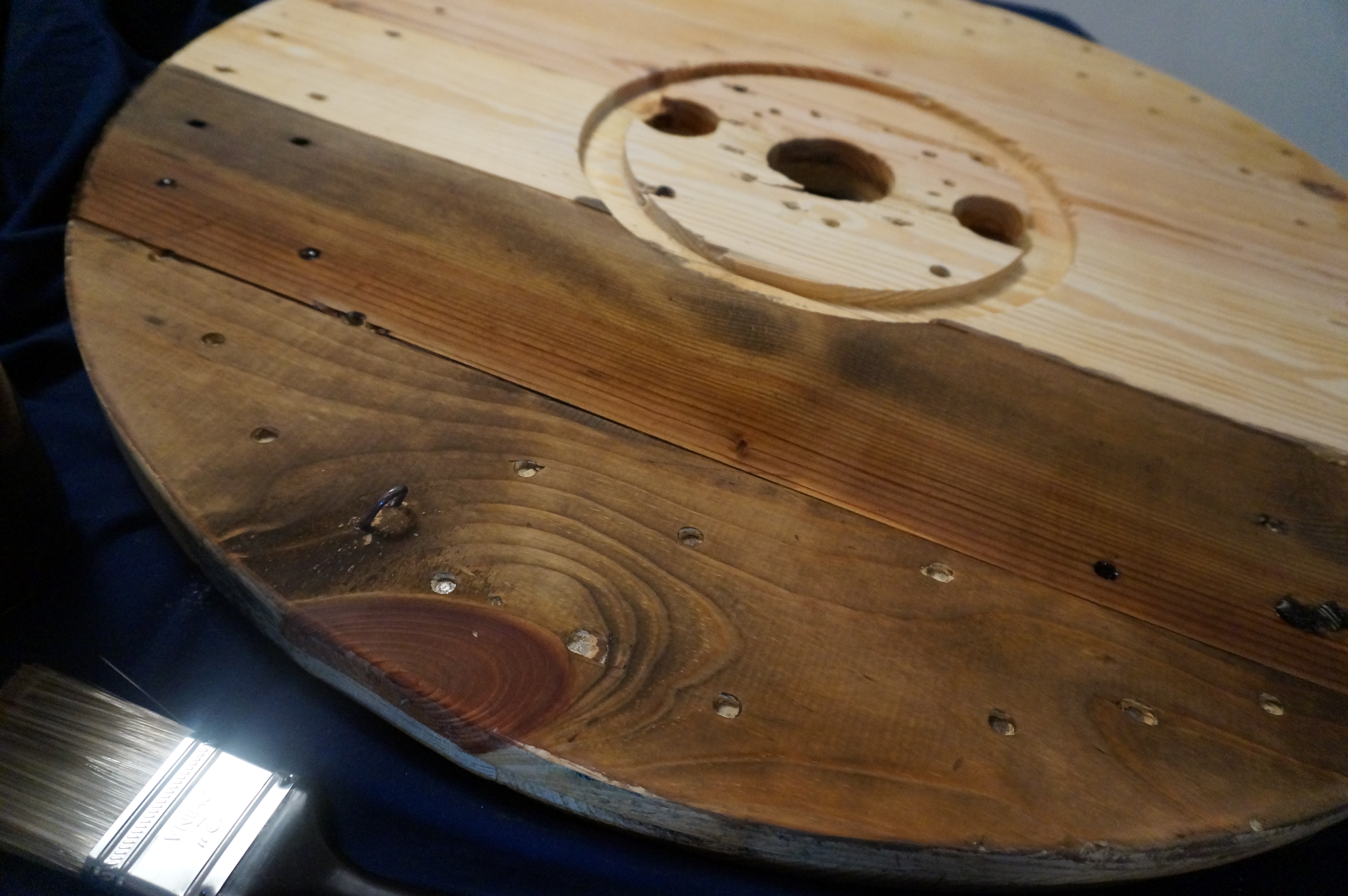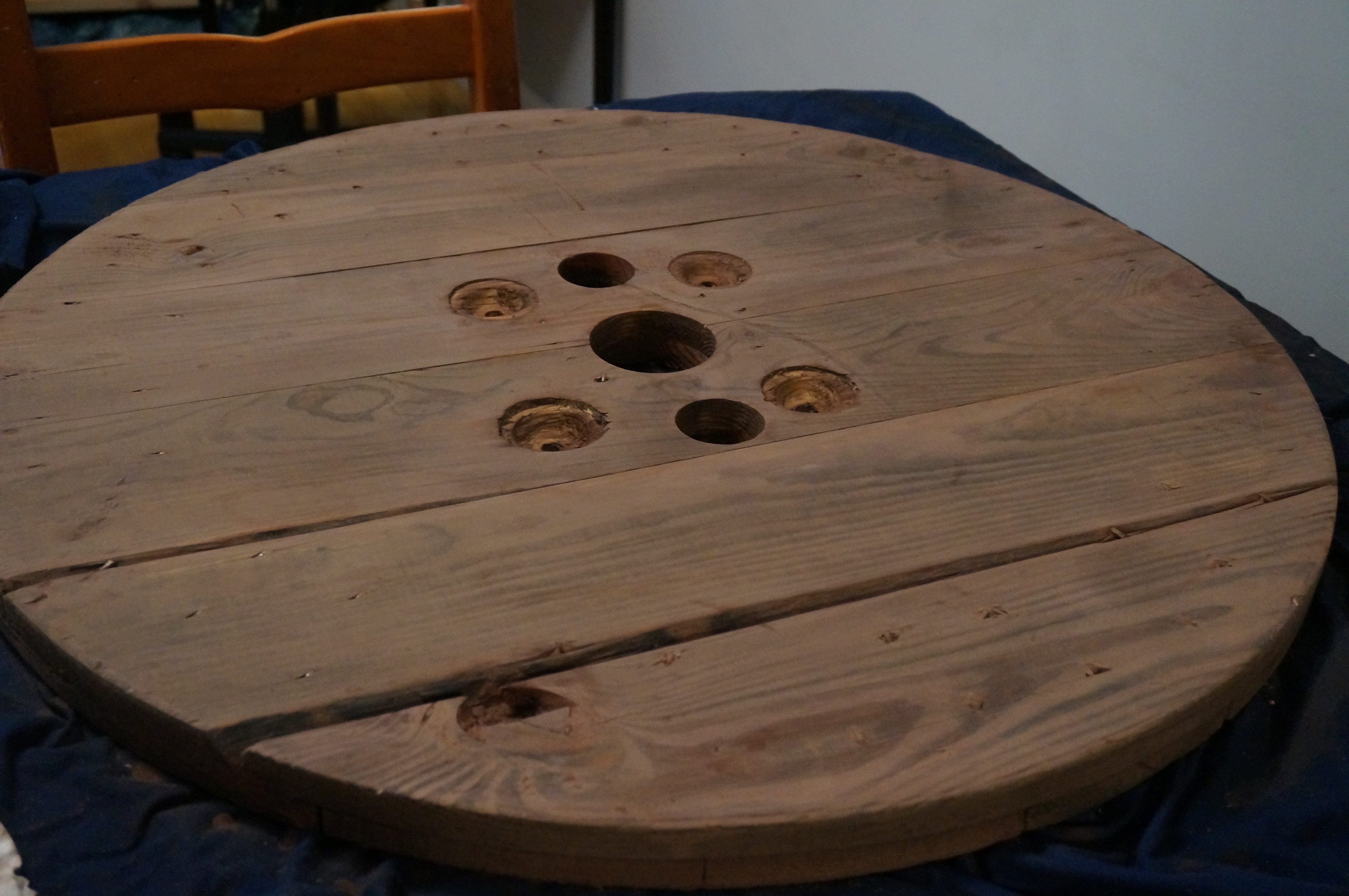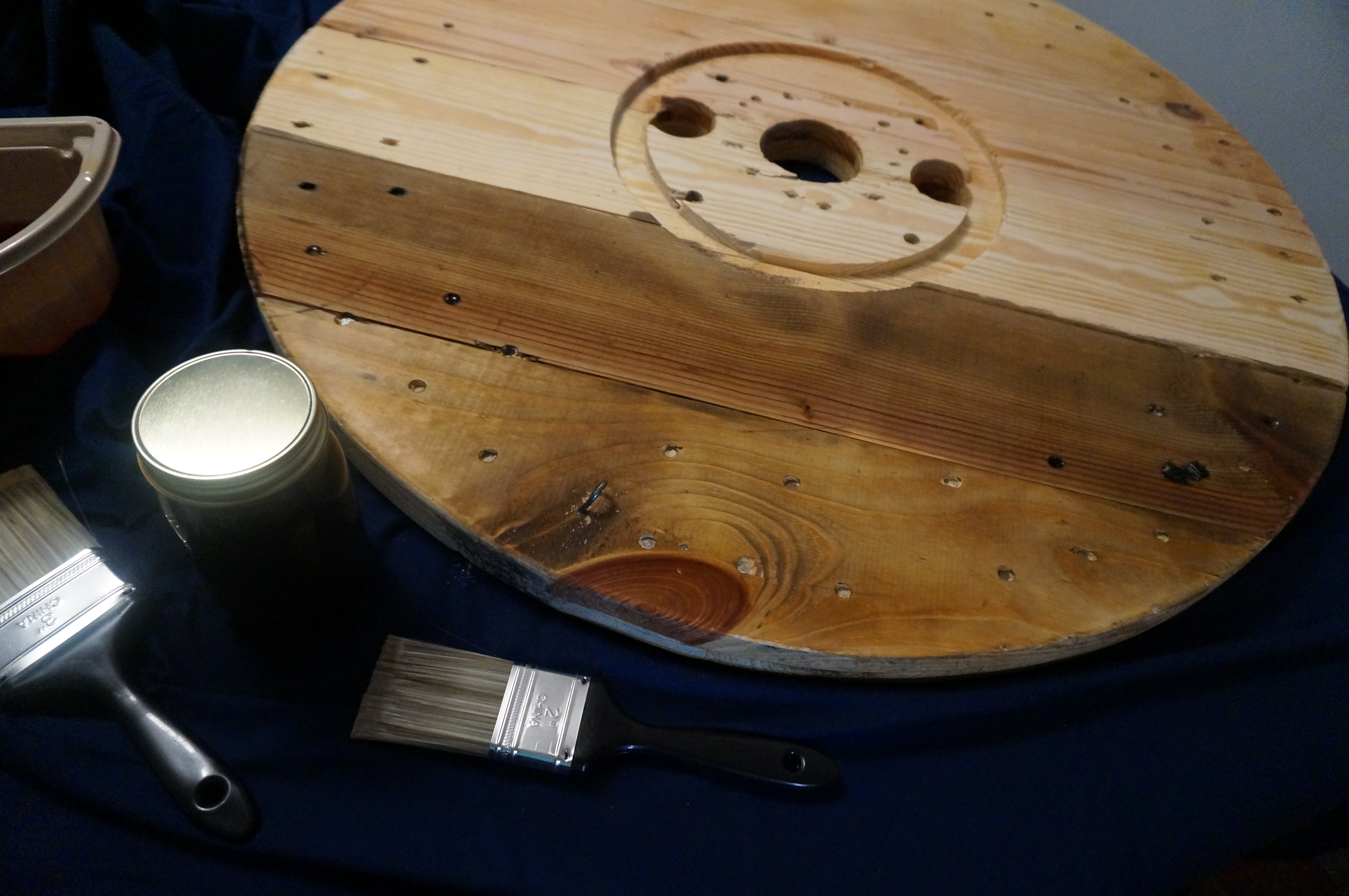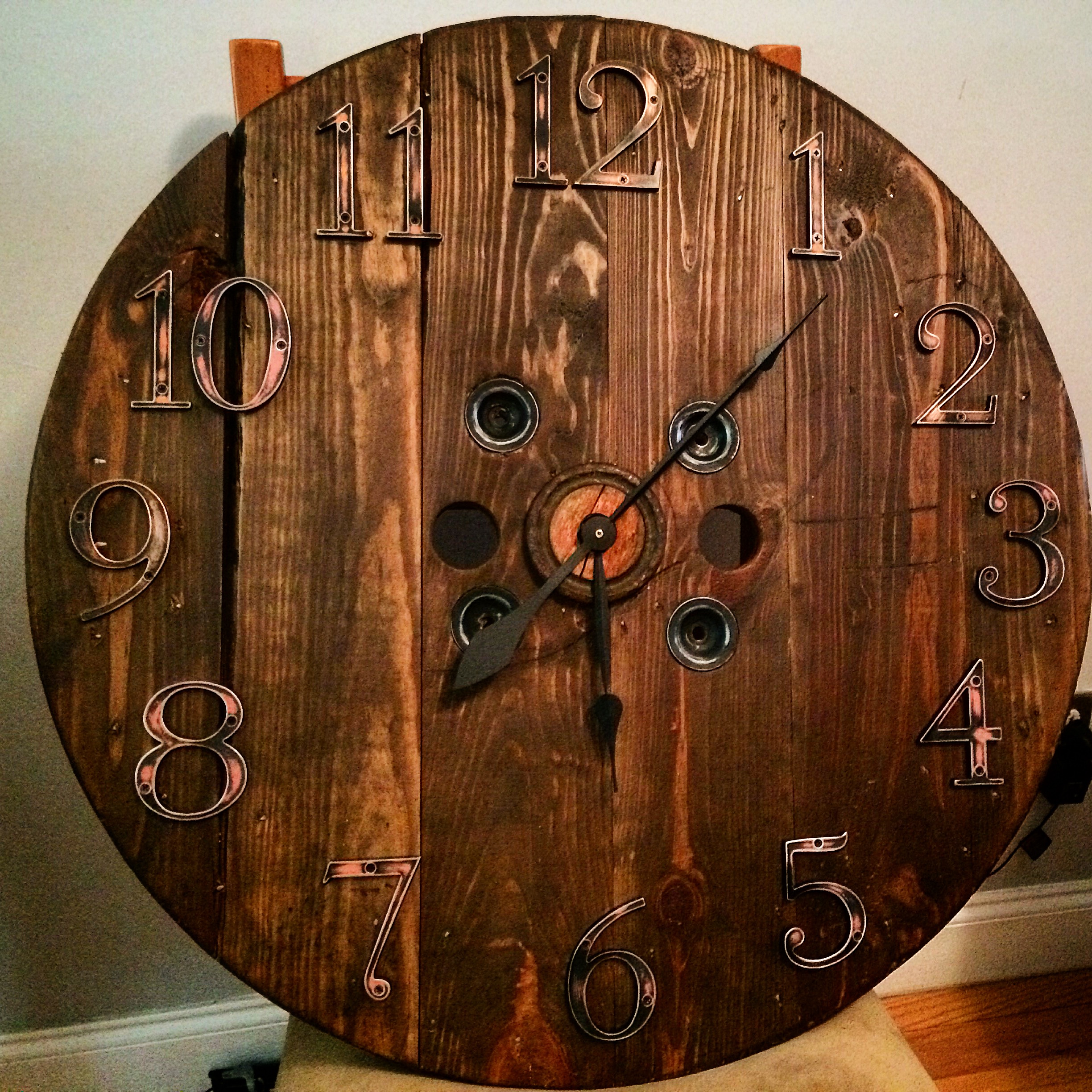 So I went looking on Pinterest for DIY clock ideas. I had no idea that it would turn into this! The inspiration came originally from Liz Marie Blog, and I thought it was just the cutest thing ever. A clock made out of one of the circular sides of an old wire spool pallet? Simple, right?