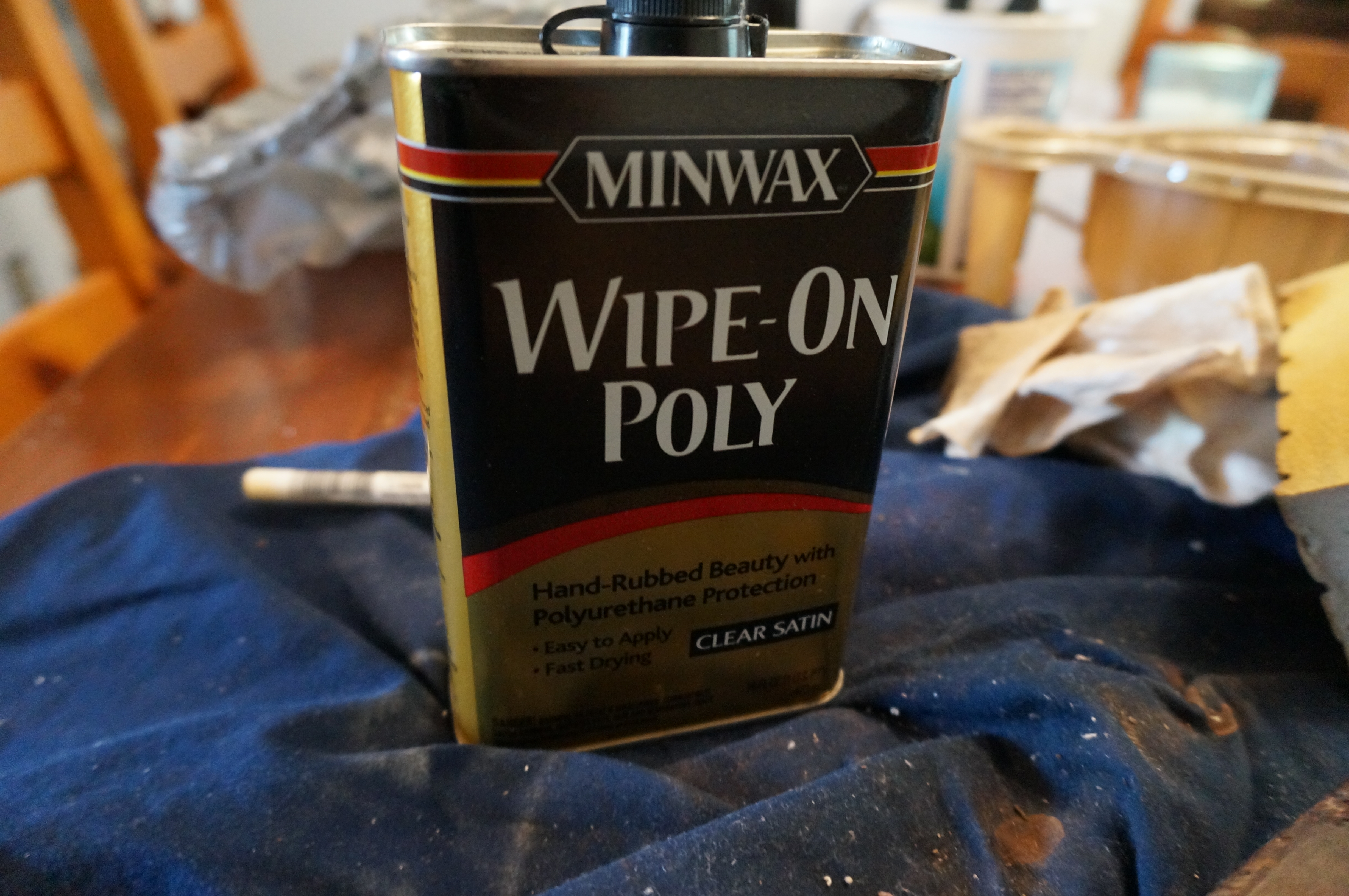 The next step in the process was to apply polyurethane wax to help deepen the grain of the wood and give it a warmer tone. This part was fun for me! I did a bit of research and decided on the wax pictured below (yep, back to Lowe’s!). I liked how this type was a wipe-on version, so I wouldn’t need to worry about brush strokes or streaks. I applied it using a lint free cloth and let it dry for a few hours, then applied one more coat.