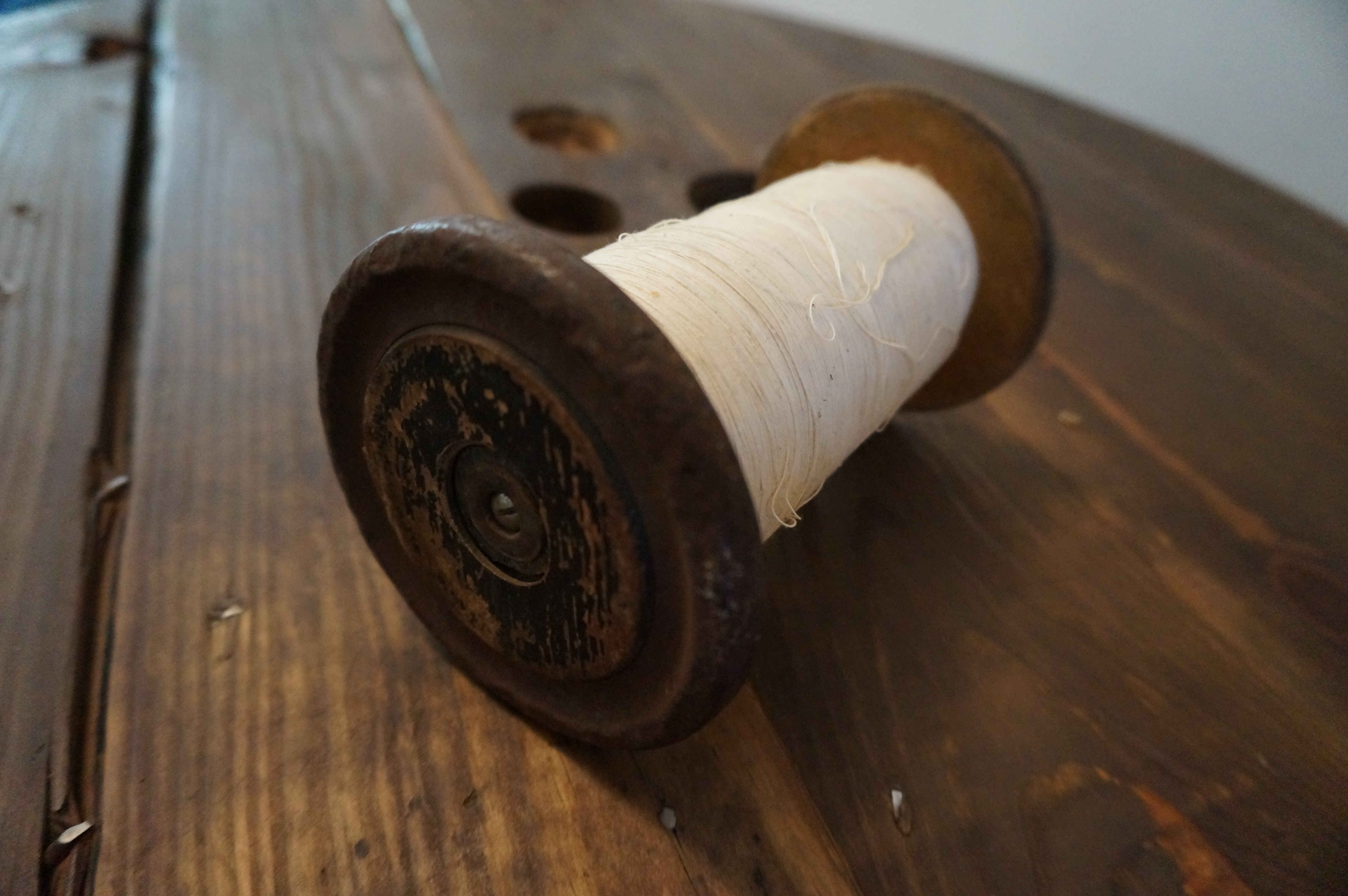 It’s actually a spool from an old cotton gin with the original thread, dating back to the 1800s! (Hence, the name “Ol’ Eli”). So cool! I actually decided I liked the idea of this even better than a wheel, because I was keeping with the spool theme.