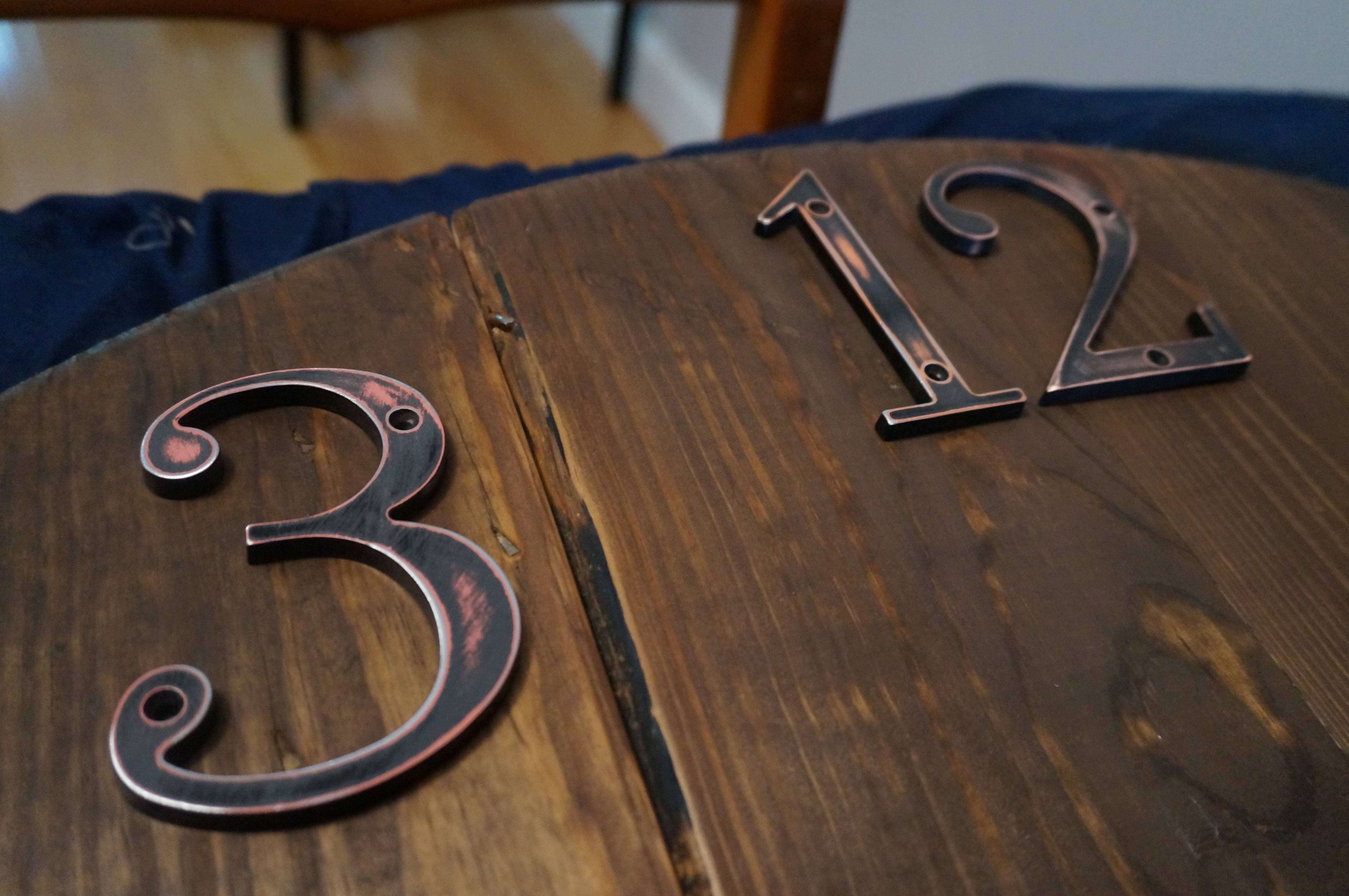 For the numbers, I used these house/mailbox numbers (again from Lowe’s) and sanded them down a little to make them look a little older. I loved the result!