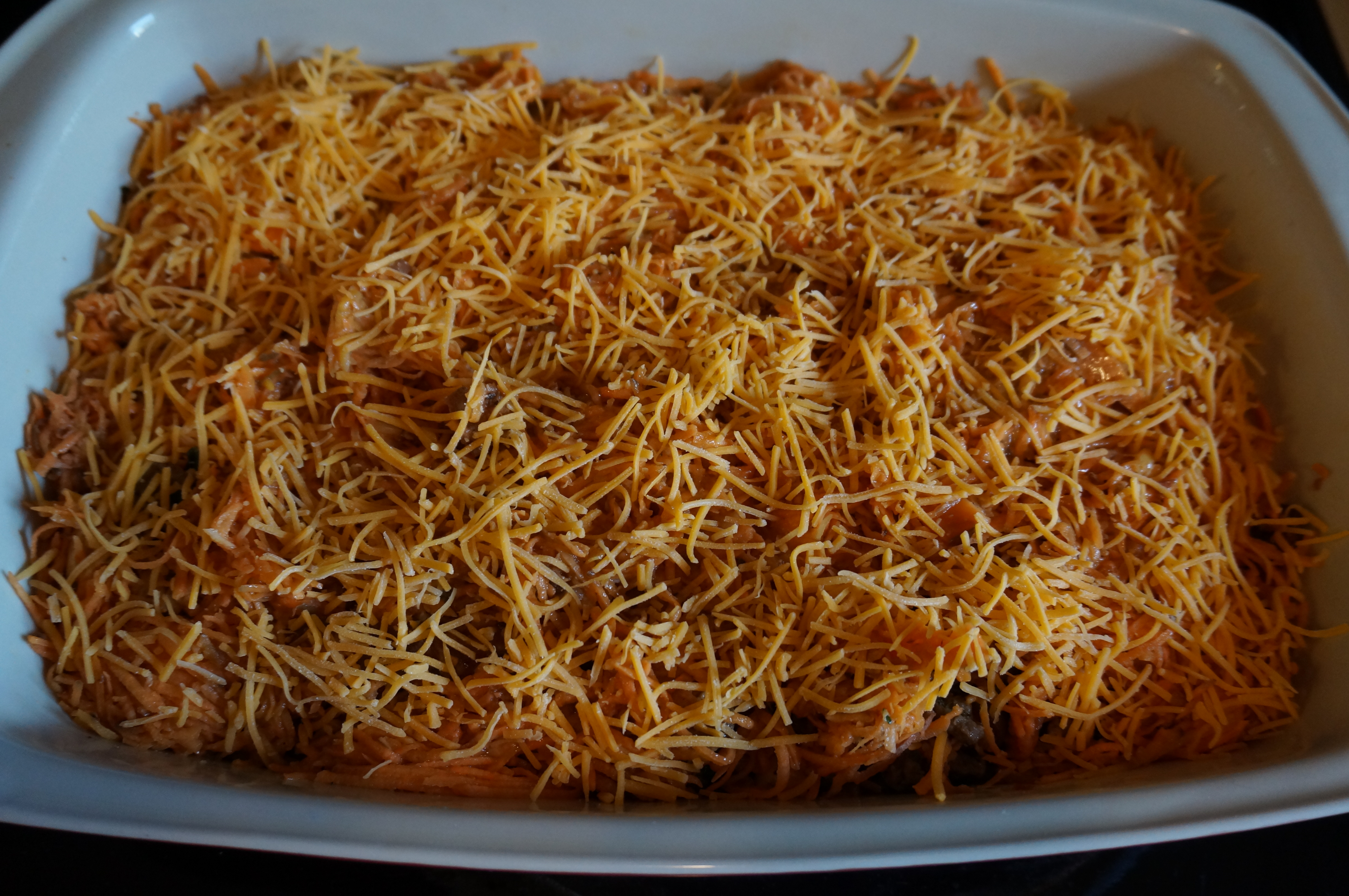 - Top with cheese, cover with foil and refrigerate at least 30 minutes (up to overnight) to allow it to set.