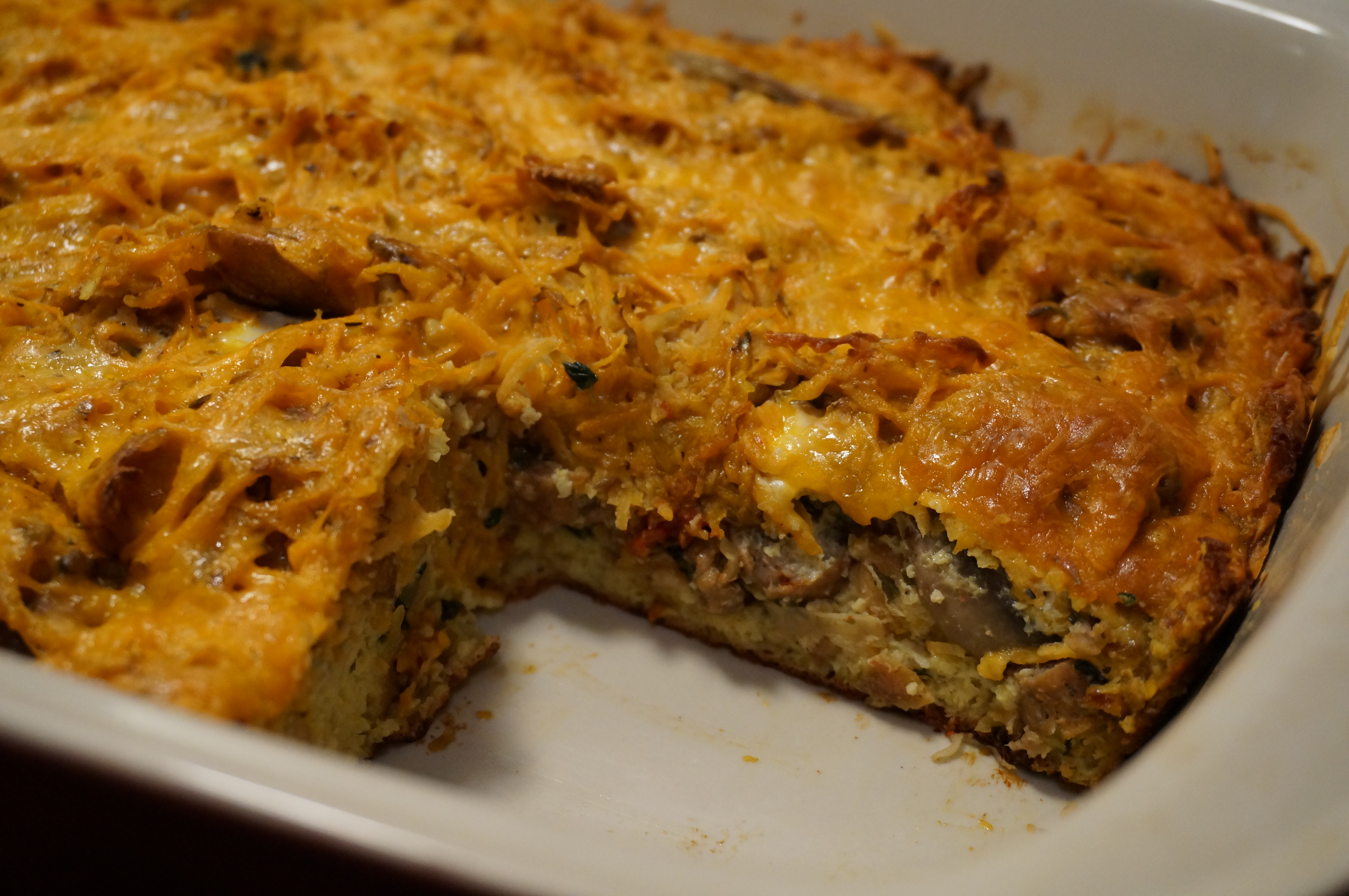 In other news, turkey sausage egg casserole was in the books for tonight! I had planned to make a Shepherd’s Pie for Ben to grab for dinners this week, but he said he’d prefer to have a lighter fare. I suggested quiche. He suggested egg casserole!