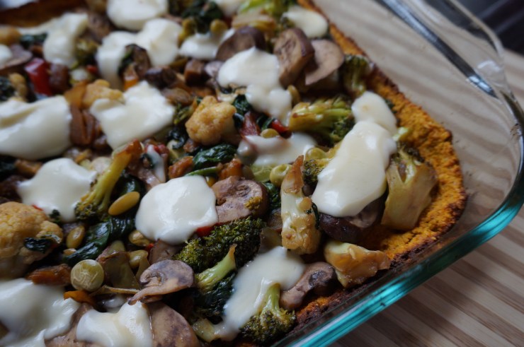 Recipe for crust adapted from pinch of yum’s 3 ingredient sweet potato crust pizza