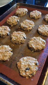 Inspired by a recipe from Iowa Girl Eats, these carrot cake cookies are wholesome enough to eat for breakfast, I swear! Minimal oil, no eggs, no butter. Oat flour and flax for staying power, and grated carrots, raisins and chopped walnuts to get that carrot cake texture. I saved about half the batch to freeze for grab n’ go breakfasts at work. Does that make me a meal prepper?
