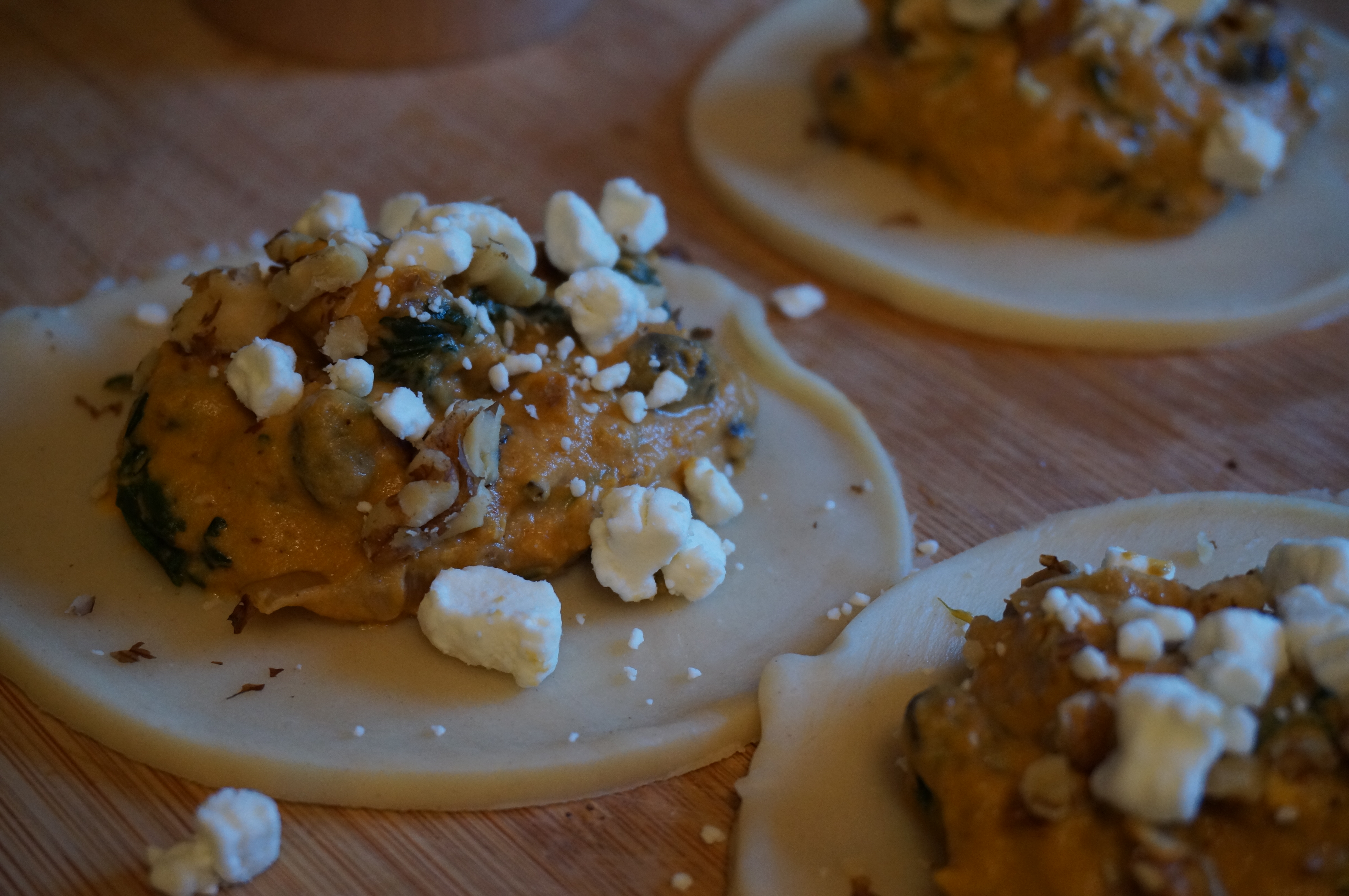 - Saute swiss chard in a large saute pan until wilted. Shock by rinsing under cold water, then squeeze firmly to get out all the water.