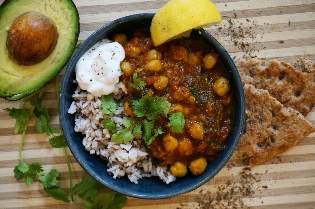 I haven’t had many strange cravings during this pregnancy so far (except for maybe chocolate milk… but let’s be real, who doesn’t crave that normally?), but one thing I can say is that now that the weather is getting a tiny bit cooler, I want stew every night! Last week I made a crock pot minestrone stew that somehow didn’t make it onto the blog, and this week I wanted something spicy! Chana masala sounded really good.
